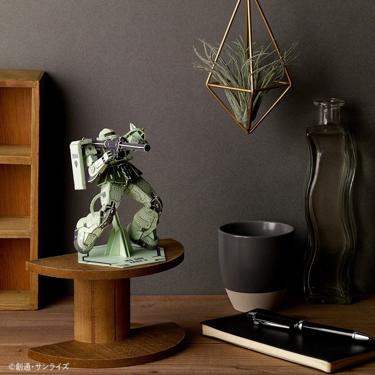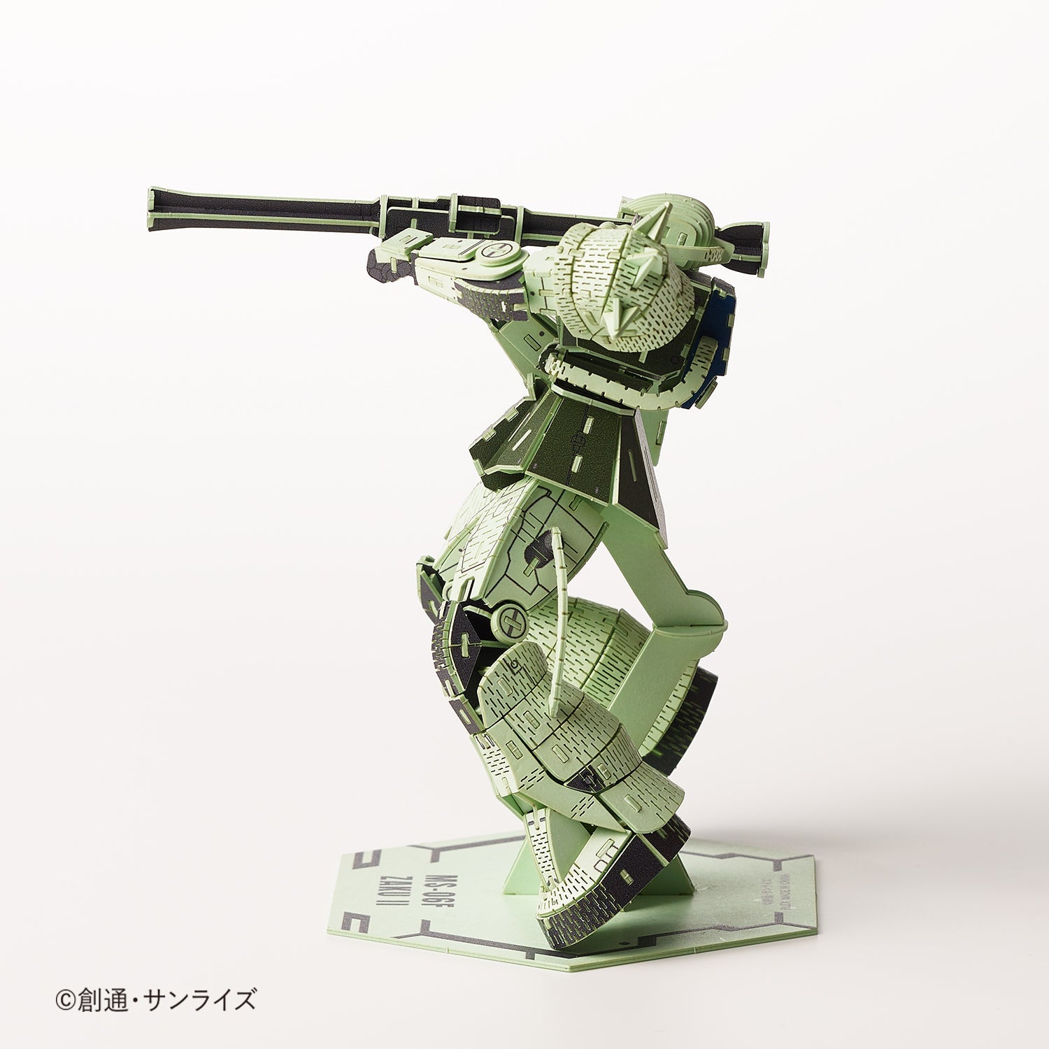 The iconic Zaku II, the mass-produced mobile suit of the Principality of Zeon, is brought to life in this intricately crafted 3D paper puzzle from the Paper Art si-gu-mi PRO Gundam series.