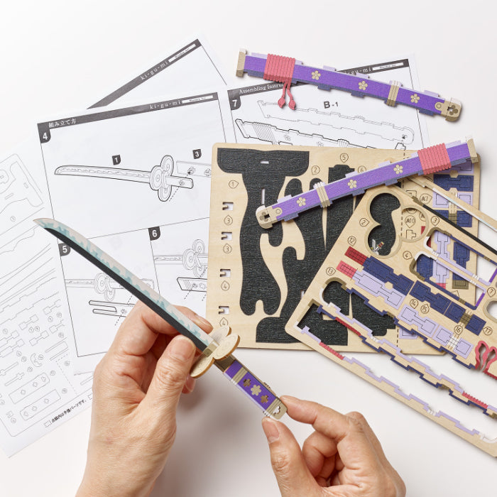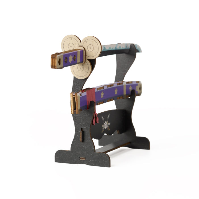 This wooden art model captures the sword’s distinctive silhouette and detailing in layered precision-cut wood. The contrast in tones and structural depth give it a bold presence when displayed, while the build process highlights the craftsmanship behind the design.